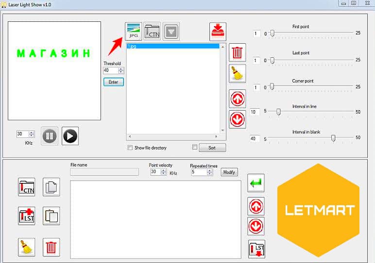 Лазер X-LASER SHOW 5W программируется очень просто. Программа идет в комплекте на флеш-карте. Для создания лазерной надписи нужно вставить картинку в программу и выбрать её на лазере. |